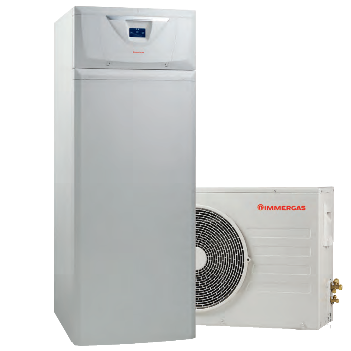 Сплит термопомпа въздух-вода, със свободно стоящ вътрешен модул,с интегриран 180-литров бойлер